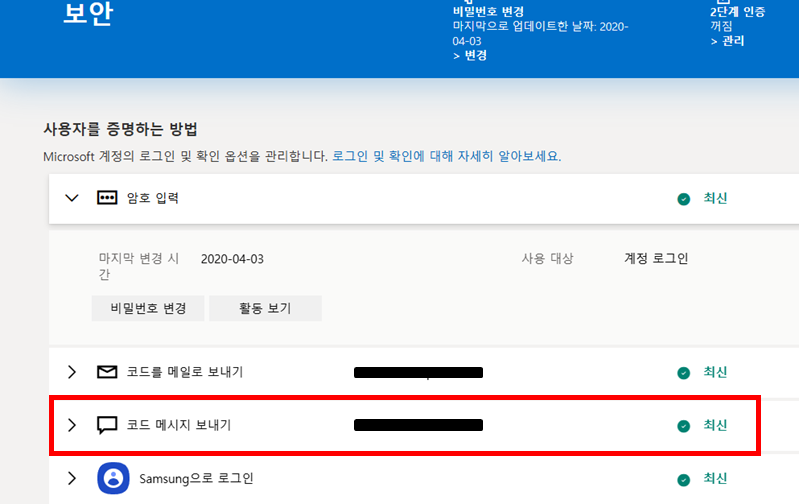 접속후 보안에서 가운데 로그인 활동 보기.... 하면 된다.